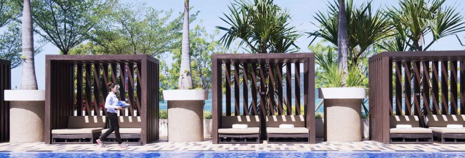 - Key Features: Tanjung Ria Kitchen, Mosaic Restaurant, Nagisa Japanese Restaurant, Delicatessen, Shenanigan's Fun Pub & Terrace, Poolside Bar, The Lounge, Swimming pool, Club Olympus Fitness Centre, Spa
