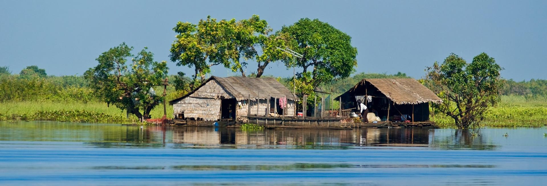 A rewarding way to travel between Siem Reap and Battambang is by boat, crossing Tonle Sap Lake and navigating the Sangker River. As you traverse the waterways of northern Cambodia enjoy views of the Cambodian landscape and scenes of daily life along the river - look out for the elaborate fish traps which look like giant spiders perched over the water. En route you will pass several floating villages, where the houses stand on stilts as high as seven metres above the water. Everything lives on the water, pigs, dogs, crocodiles and people, all jockeying for space in these incredible floating towns. The vessels that we use are private wooden boats with ample space and a local-style bathroom. This fascinating cruise takes approximately 6-7 hours cruise when the water levels in the lake are high between the months of October and January - we do not recommend this experience when water levels are low in the other months of the year.