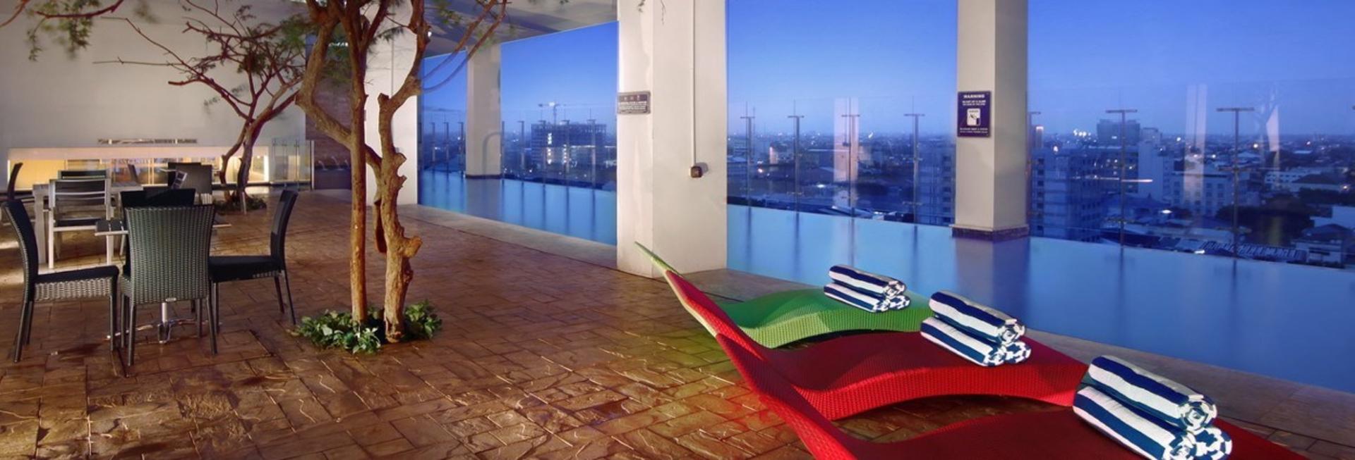 The Aston Makassar Hotel & Convention Center is a modern hotel with a convenient location in central Makassar within walking distance of Fort Rotterdam and Losari Beach. Each of the 177 air-conditioned rooms come equipped with private bathrooms, TV&DVD, minibar, coffee/tea making equipment, hair dryer and safety deposit box. Facilities at the hotel include a restaurant, coffee shop, indoor pool, fitness centre and health spa with treatment rooms.
