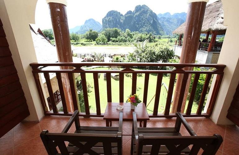 The Elephant Crossing Hotel is a stylish, friendly boutique hotel set in a garden beside the river in Vang Vieng. The hotel has 31 rooms featuring ensuite bathrooms, individually controlled air-conditioning; ceiling fans; polished wooden flooring; and a private balcony with river and mountain views. The covered restaurant terrace is perfect for a relaxing breakfast and the scenic riverside restaurant is ideal for daytime, sunset, and evening dining on a fusion of Lao and European cuisine. The Elephant Crossing hotel is only a few minutes walk from central Vang Vieng.