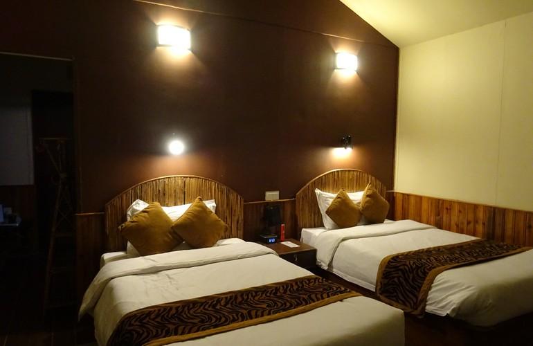 Tigerland Safari is spread across 8-acres of verdant greenery, set by a river which separates the lodge from the expanse of Chitwan National Park. The 35 cottage rooms are built on stilts off the ground, replicating the local Tharu culture, and are designed to survive both tropical heat and monsoon rains. The rooms are well-equipped with comfortable beds, air-conditioners and heaters (dependent on time of year!), and modern bathrooms with hot water supplied by gas or solar-powered sources. There is a large communal restaurant which serves meals buffet style, catering to both local and international tastes. There is an expert team of naturalists in-house who lead all excursions, including jeep safaris, jungle walks, bird-watching, canoeing, fishing and village tours.