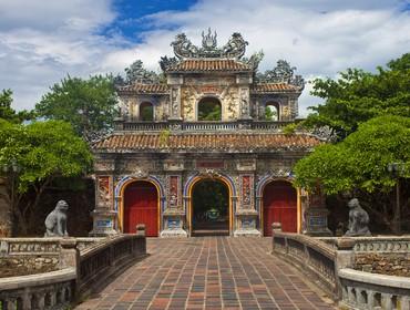 Gates to the Citadel, HueMorning visit to the Imperial Citadel & Royal Mausoleums: This morning, drive to the Imperial Citadel and the Forbidden Purple City. Modelled on the Forbidden City in Beijing by the Nguyen emperors in the early 19th century, the city was badly damaged during the war but the imposing city walls, surrounded by a large moat, afford good views of Hué. The palace retains a feeling of its past scale and importance, with detailed stonework and pavilions and it is at the moment in the process of being restored to its former magnificence. The final resting places of the Nguyen Emperors are dotted around the hills surrounding the south bank of the Perfume River. Each tomb is of individual construction but usually features a pavilion, detailing the lifetime accomplishments of the dead emperor, a temple for worship to the emperor, a sepulchre, where the emperor's remains are enclosed, a decorative courtyard and a lotus pond.