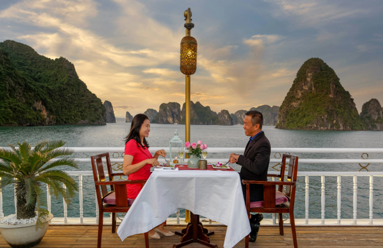 One of the most stylish ways to experience Halong Bay. The Violet resembles an intimate floating boutique hotel.